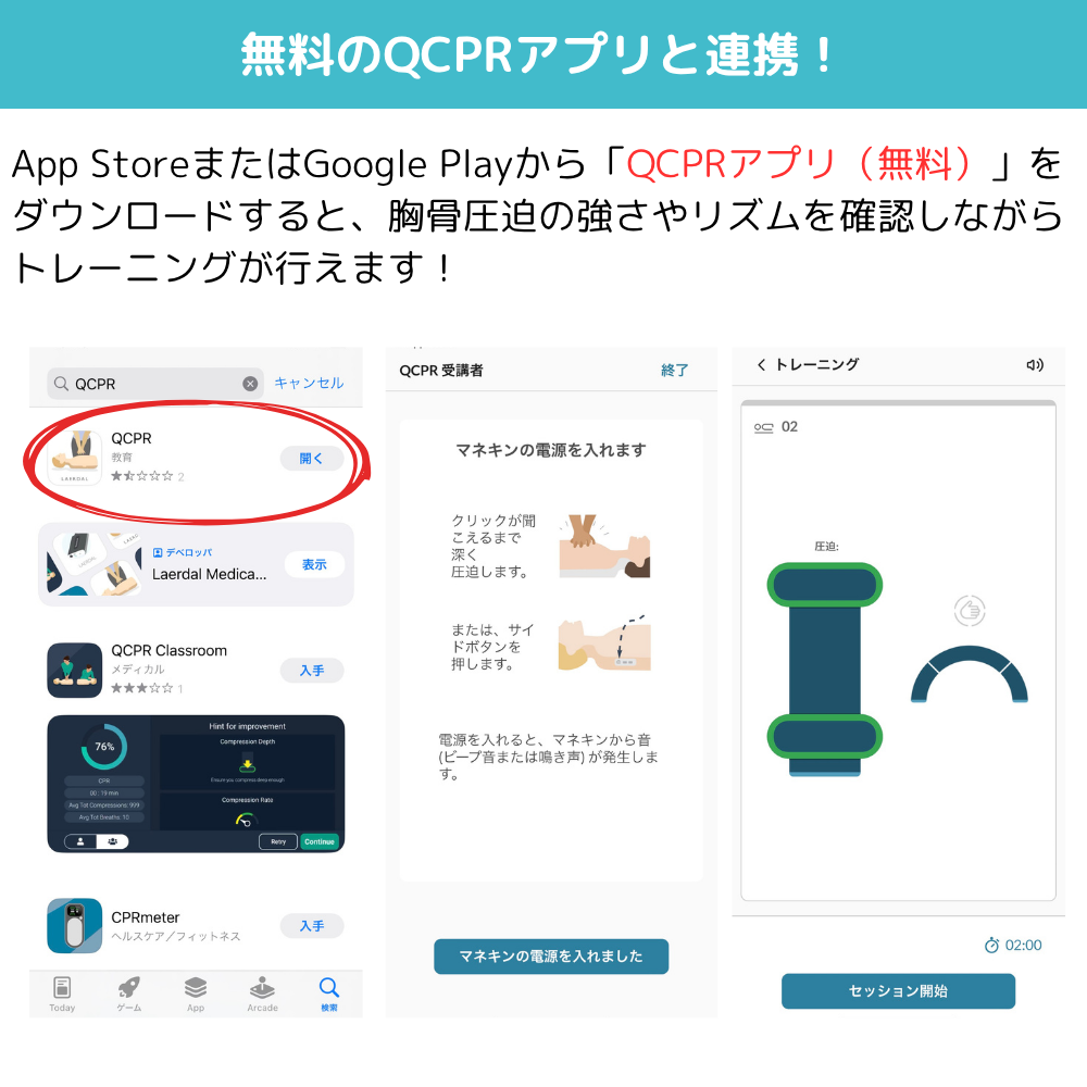 5種類のシナリオを準備し、JRC(日本版)ガイドライン2020に沿った講習が可能です。※標準設定1.心電図の解析⇒2.電気ショック⇒3.胸骨圧迫と人工呼吸(2分間) ⇒4.心電図の解析⇒5.ショックなし⇒6.胸骨圧迫と人工呼吸(2分間)⇒1.から繰り返し日・英バイリンガル機能を搭載しています。