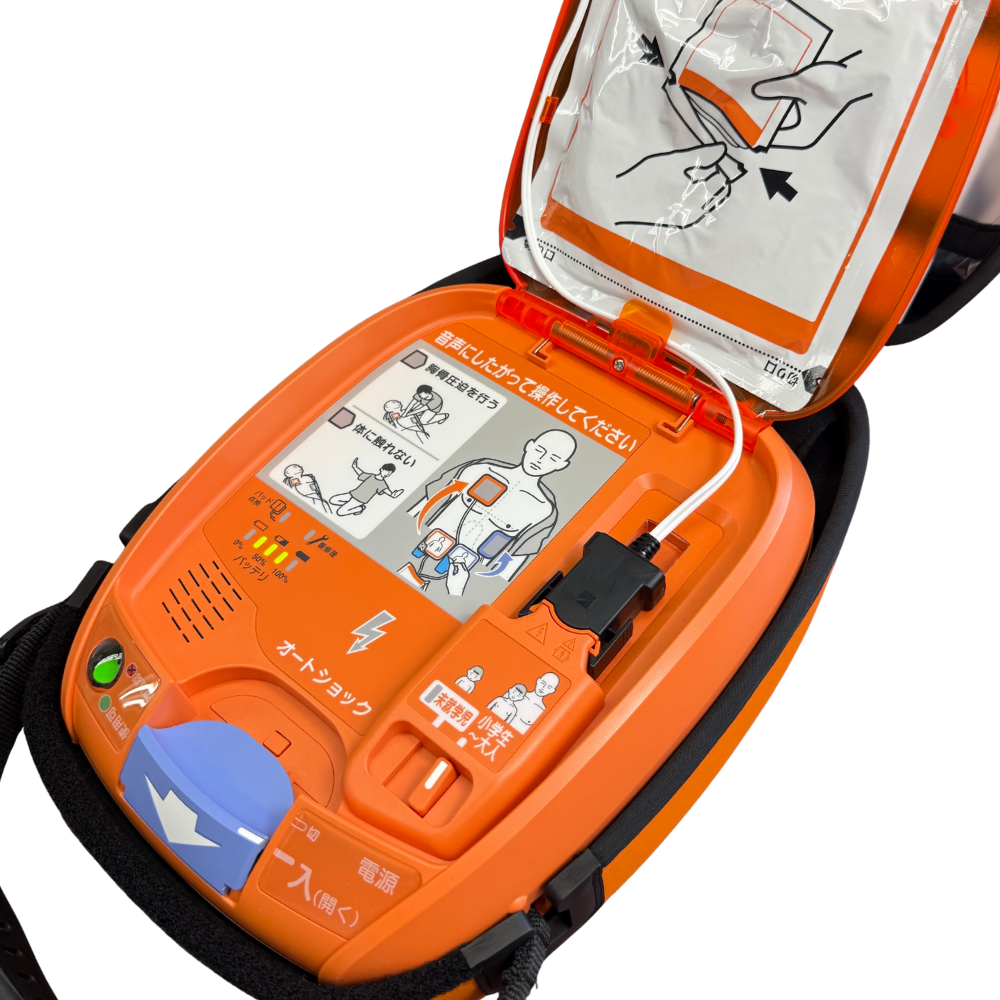 日本光電のオートショックAED ・耐用期間中での機器の保証付販売 ・−5〜50℃の幅広い環境下での使用が可能 ・操作ガイド:一般的な音声ガイド+イラストガイド(カラー液晶) ・日々のリモート監視(異常発見時に連絡実施)※ソフトバンクの携帯回線が届かない場所ではこのサービスはできません ・成人/小児:切り替えスイッチ(パッドは成人/小児共通) |