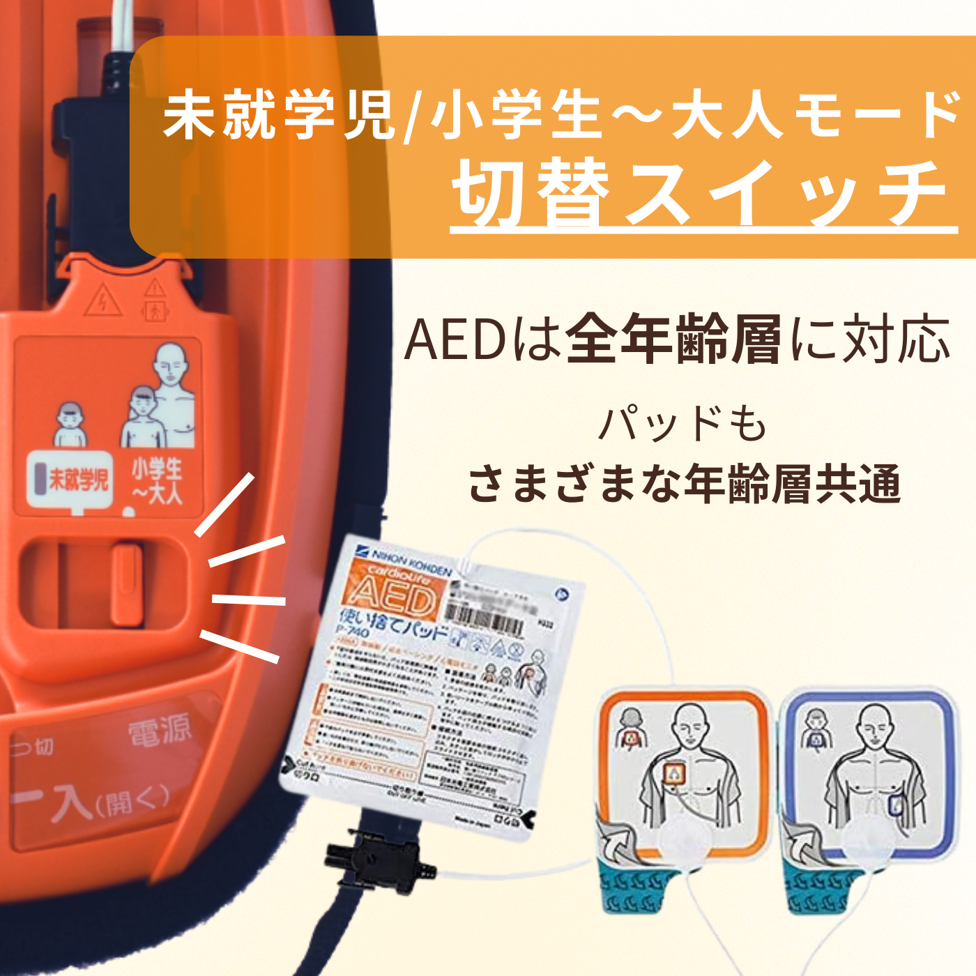 未就学児には未就学児用パッドや未就学児用モードを使用します。