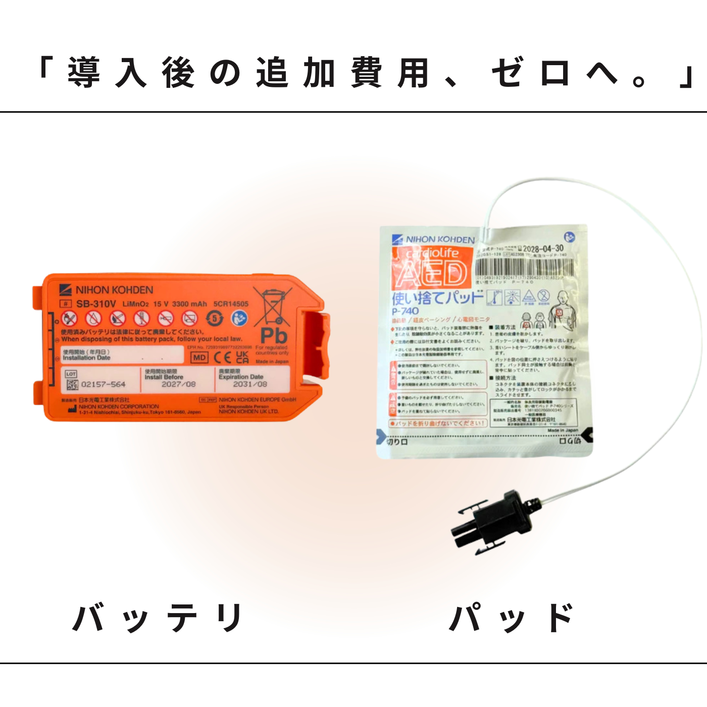 ■ 救命使用時も安心 救命活動で使用した際の使い捨てパッドも、その都度、無償で新しいものをお届けします。追加の費用を気にすることなく、万が一の事態に備えられます。